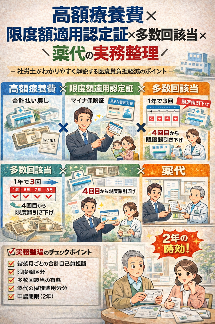 このような「高額療養費」等の相談を受けましたので、本記事では、高額療養費制度・限度額適用認定証・多数回該当・薬代の取り扱いを実務目線で整理します。医療費相談を受ける専門職の方、企業の労務担当者、そしてご家族の医療費管理をされている方にも役立つ内容かと思います。