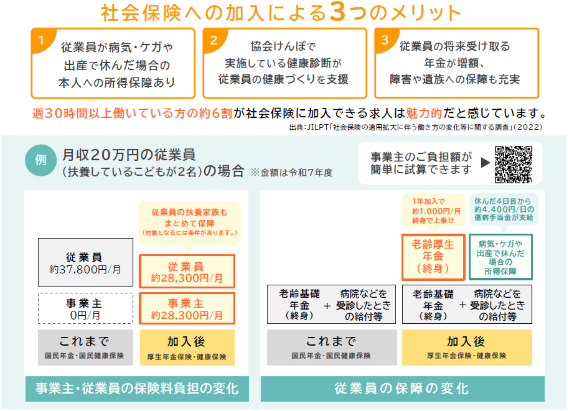 特に若い世代ほど、社会保険の有無を重視する傾向が強く、「雇われるなら社会保険のある職場が良い」と考える人が増えています。そのため、社会保険の加入は“コストではなく投資”と捉える事業主も少なくありません。